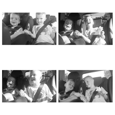 Raleigh and Ben being adorable (and loud, so so loud) in the back seat of Rachel's car.